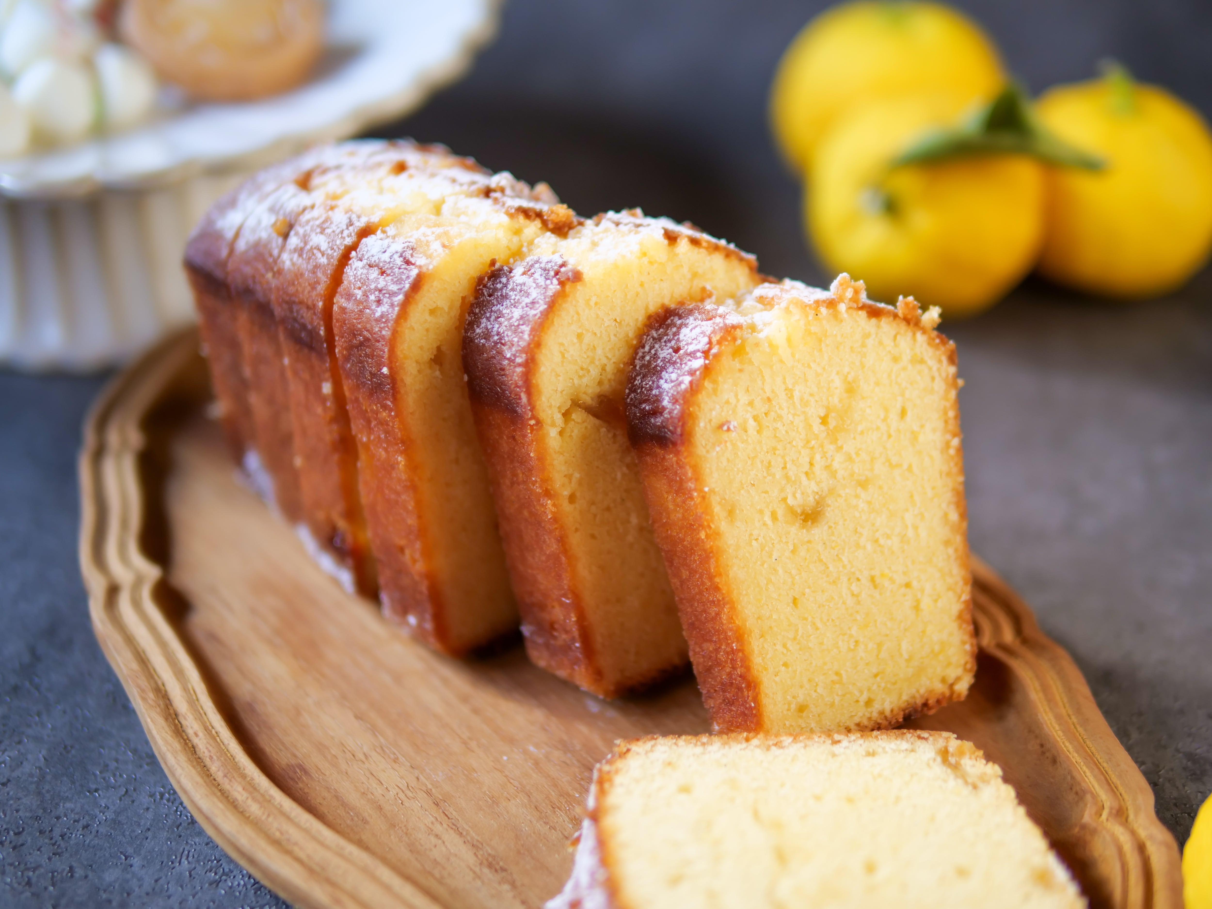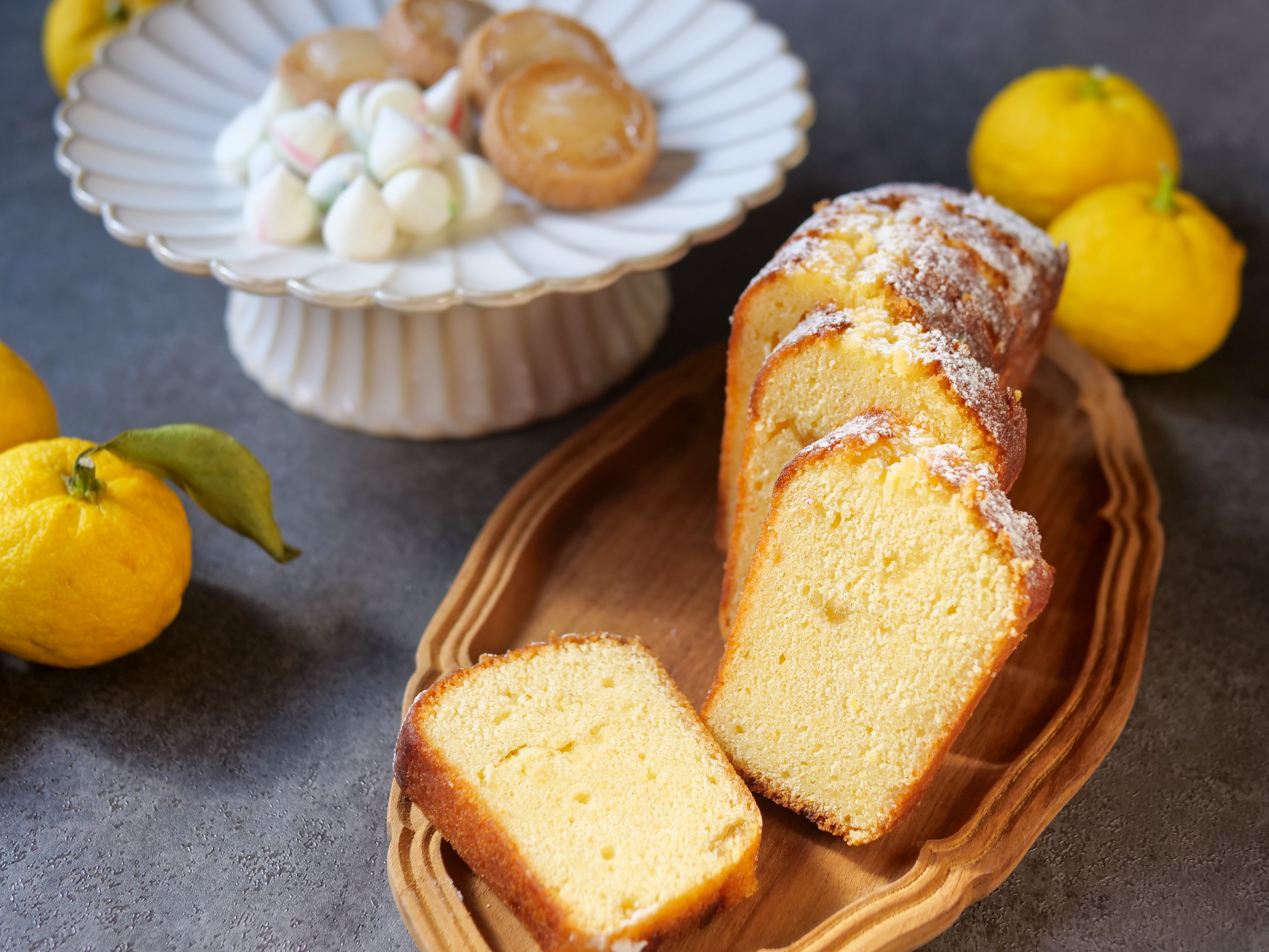 自家製の柚子コンフィチュールを混ぜ込み、しっとりと焼き上げています。